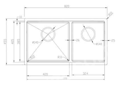 - Là loại chậu rửa đôi inox có cánh chờ, 2 bên hộc rửa được thiết kế vuông vắn. Hộc rửa ở phía bên phải có kích thước nhỏ hơn hộc rửa bên trái.