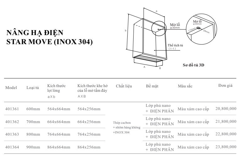 - Loại tủ 600, 700, 800, 900 mm