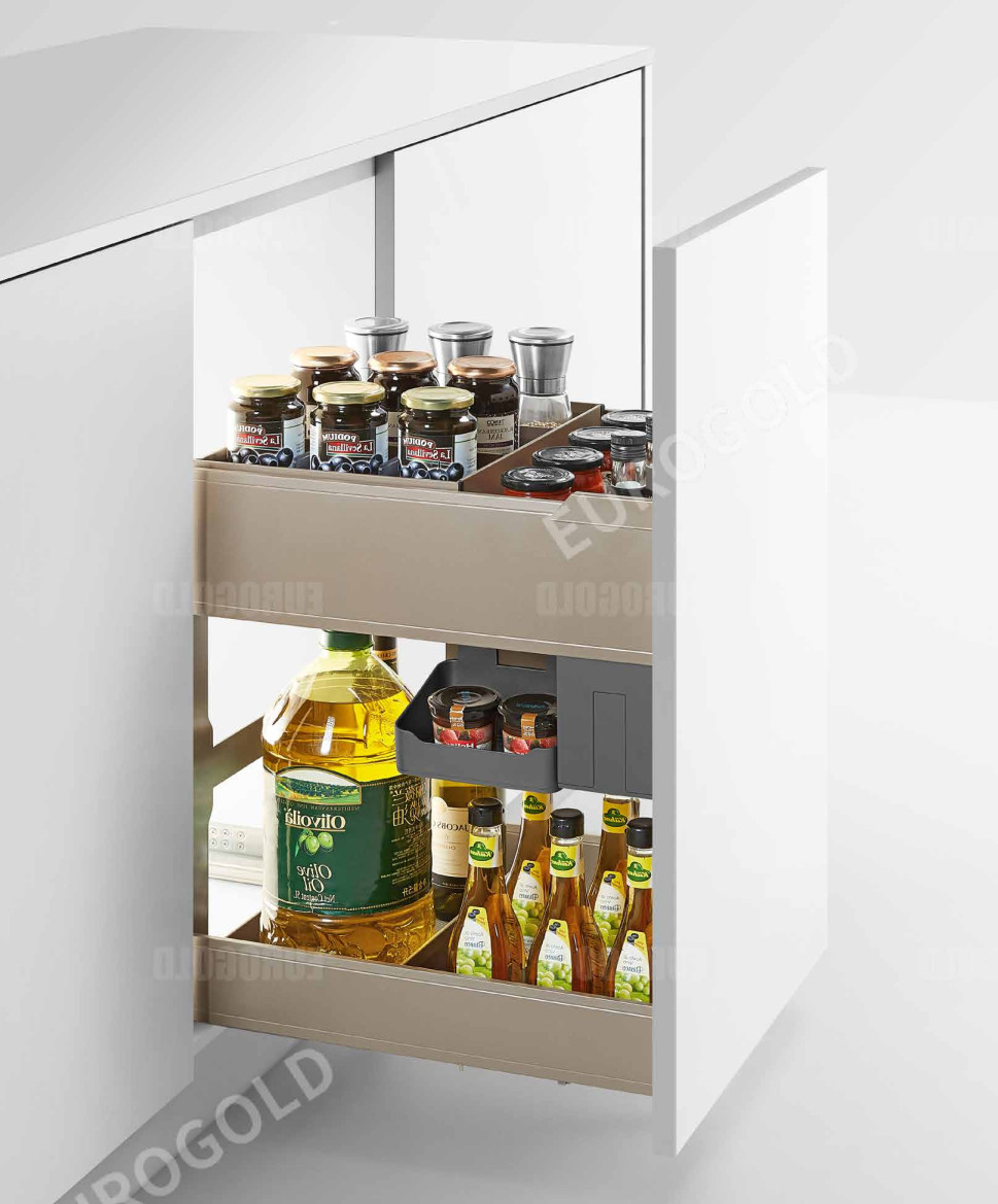 - Sử dụng dễ dàng: Khi cần lưu trữ vật dụng, người dùng chỉ việc cho vật dụng vào các ngăn tương ứng. Ngoài ra, giá dao thớt chai lọ hộp Eurogold EUM20 còn tích hợp bộ ray giảm chấn êm ái nên bạn không cần phải lo lắng tình trạng kéo ra đẩy vào khi sử dụng gây ra tiếng ồn ảnh hưởng đến các hoạt động khác của gia đình.