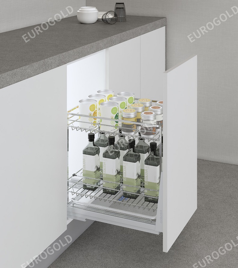 Giá gia vị inox nan vuông ray giảm chấn ERO304 Eurogold