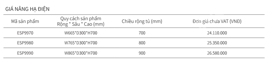 - Chiều rộng tủ: 700mm- 800mm-900m.