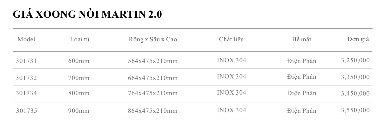 - Loại tủ 600mm - 700mm -750mm - 800mm - 900mm