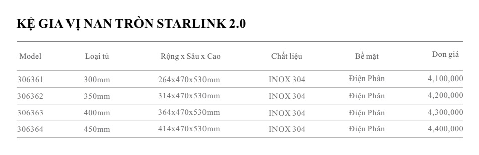 Kệ gia vị nan tròn Starlink 2.0 tối ưu với kết cấu lưu trữ nhiều tầng, để cải thiện chức năng tiết kiệm không gian.