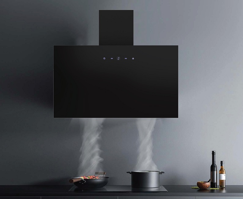 Máy hút mùi chữ T mặt kính đen bo viền inox