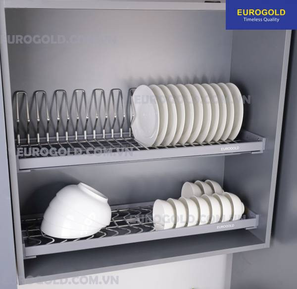 Ngoài giá bát đĩa nâng hạ Eurogold bạn có thể lắp đặt giá bát cố định Eurogold loại 2 tầng, 3 tầng dành cho tủ bếp trên